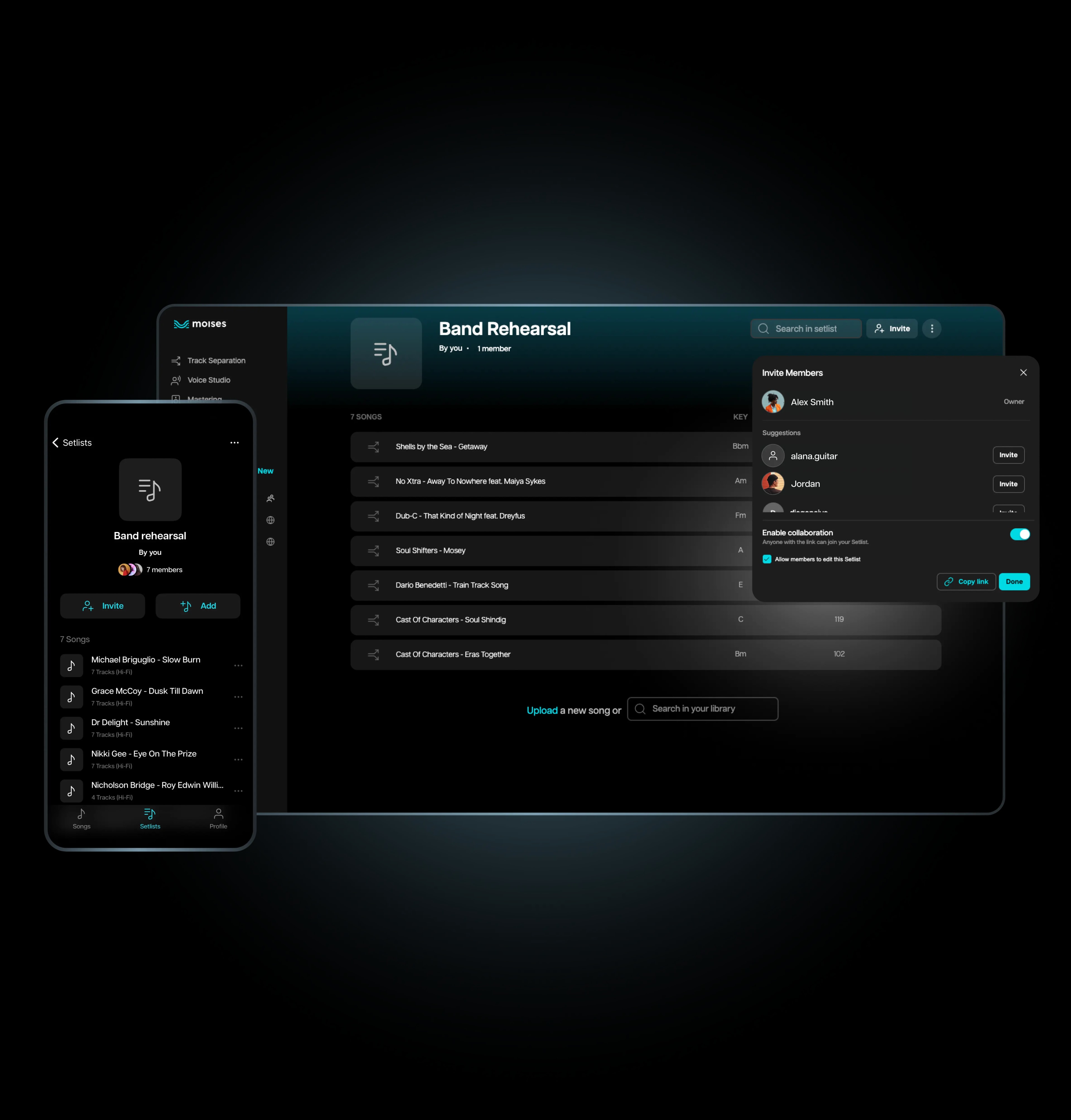 Effortlessly collaborate by inviting up to six members in addition to yourself. Invite bandmates, students, or collaborators via personalized links, fostering a shared creative space that enhances teamwork and artistic collaboration.