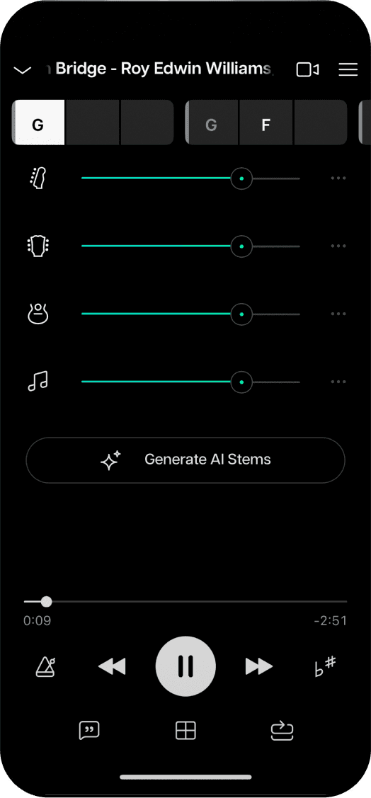 Transforme n’importe quel morceau en quelques secondes. Isole ou bien mets en sourdine des voix, des instruments ou des percussions avec un niveau de fidélité sans précédent.