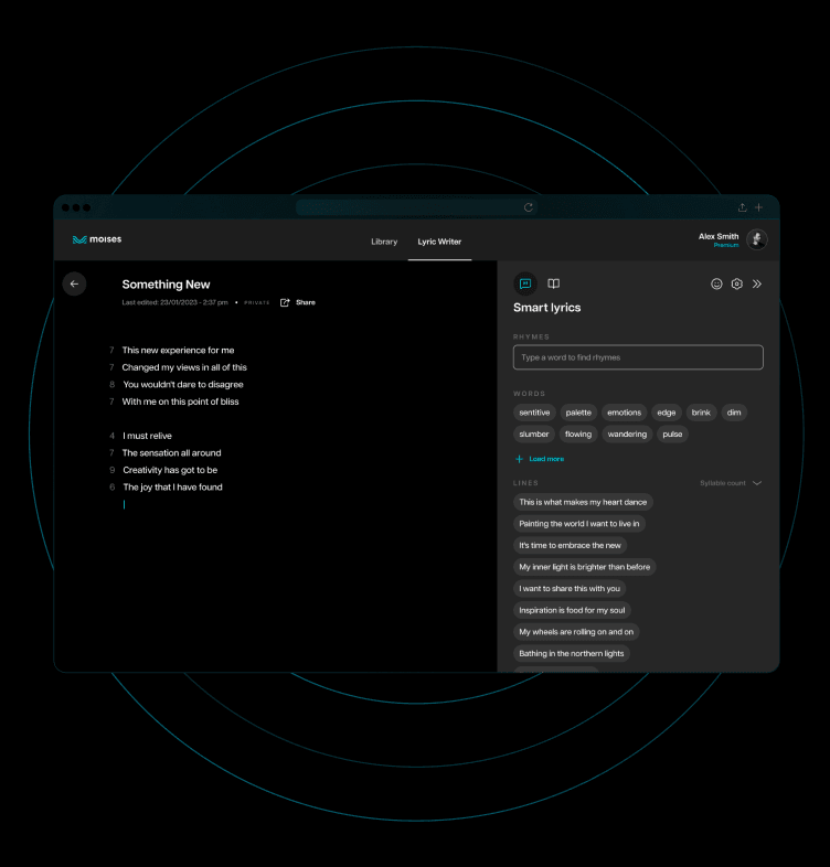 Garde ta créativité en éveil avec le partenaire d’écriture de paroles ultime, qui adapte les suggestions de vers et de rimes à tes propres idées. La fonction d’Auteur est un compagnon d’écriture infatigable qui va au-delà d’un générateur rigide de paroles par IA. Il te permet d’exprimer ta créativité comme jamais auparavant.