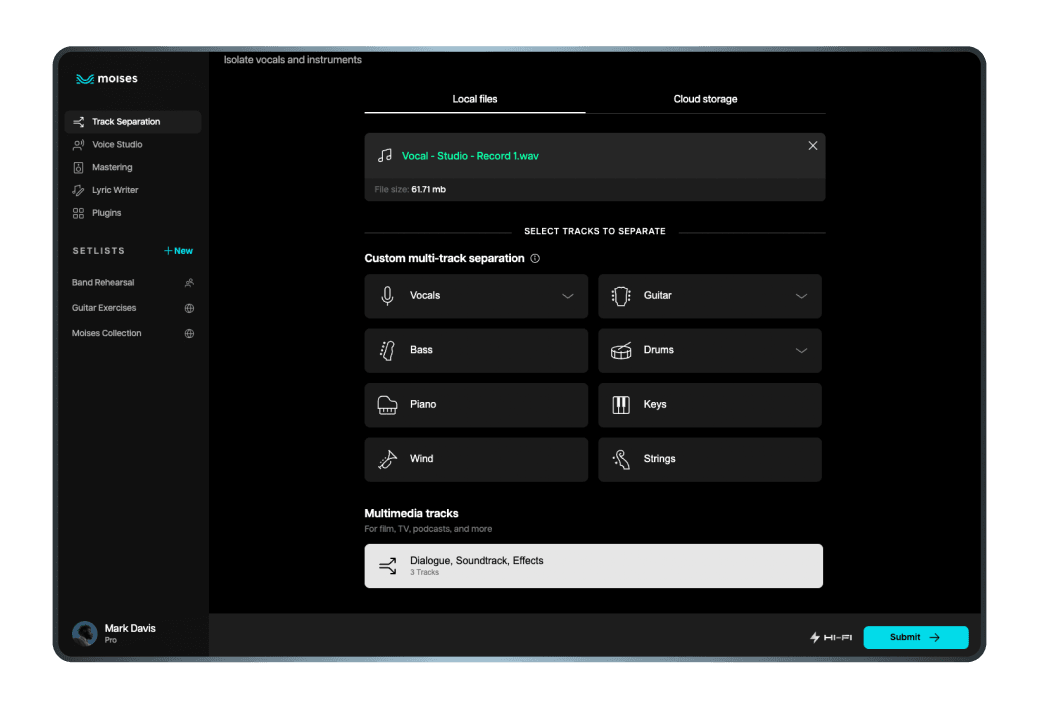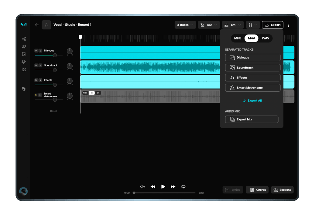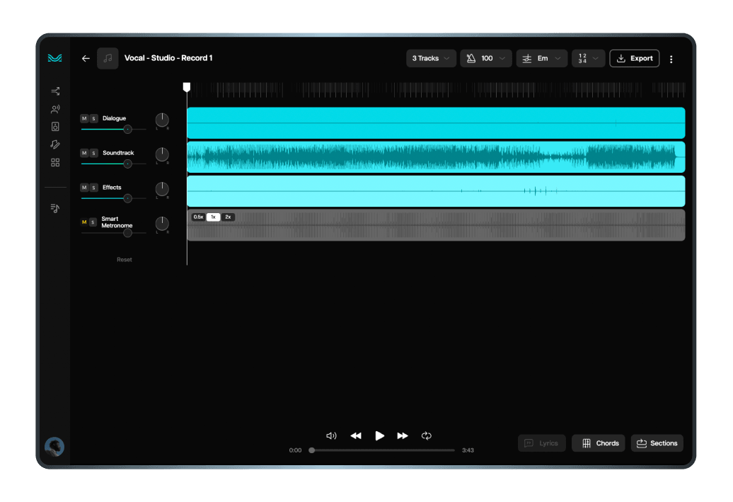 Commence par télécharger le fichier que tu souhaites modifier, qu’il soit en MP3, WAV, FLAC, M4A, MP4, MOV, ou WMA. Tu peux importer depuis ta bibliothèque, depuis le cloud, ou depuis une URL publique.